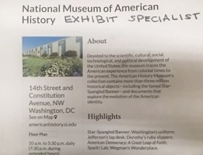 Exhibit Specialist at the American History Museum in Washington, D.C.